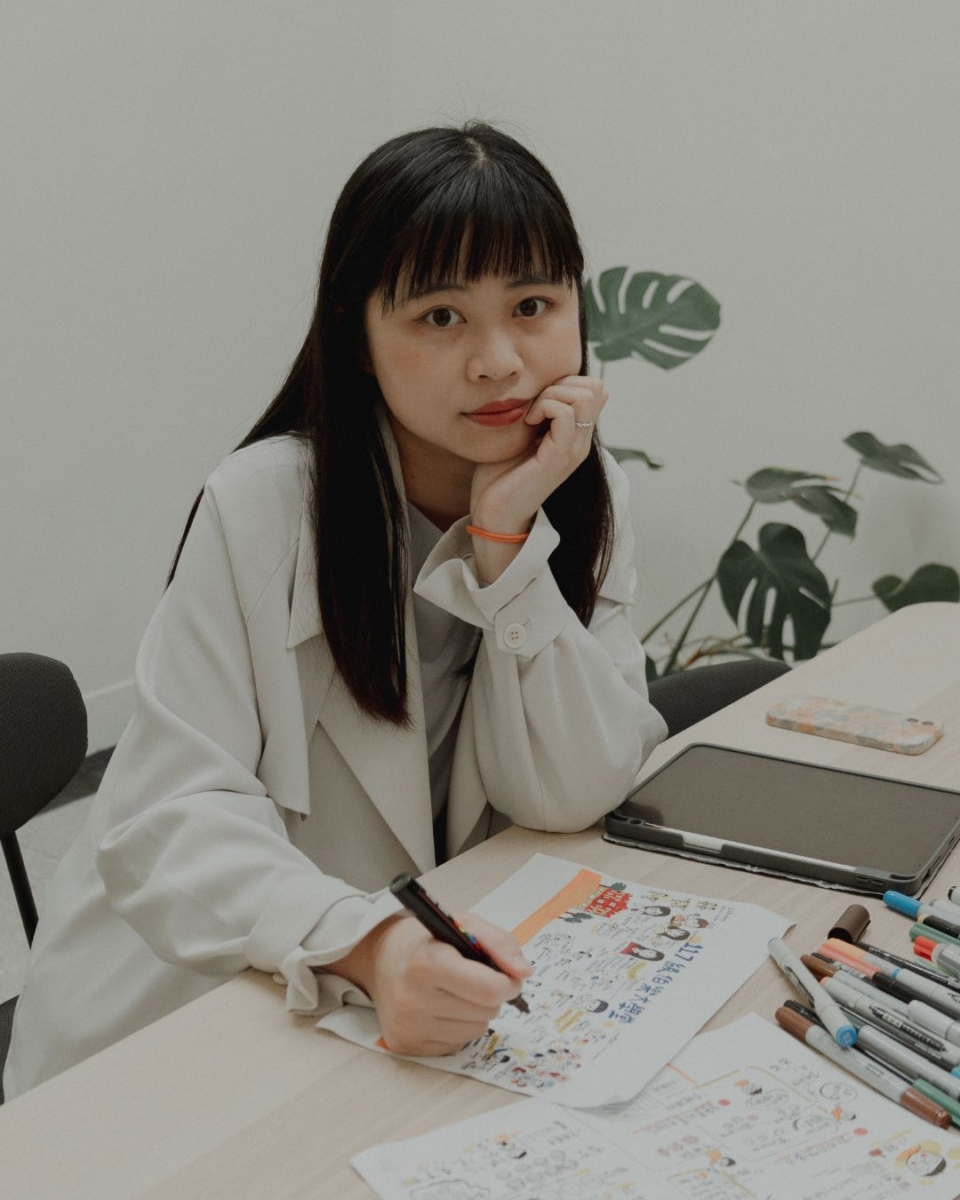 2016 年開始走上這條路。因為她相信:「知識需要被留下來。」很多講座或會議結束後,內容常常被遺忘,但如果透過圖像去記錄,它就能被看見,也能被再次分享。